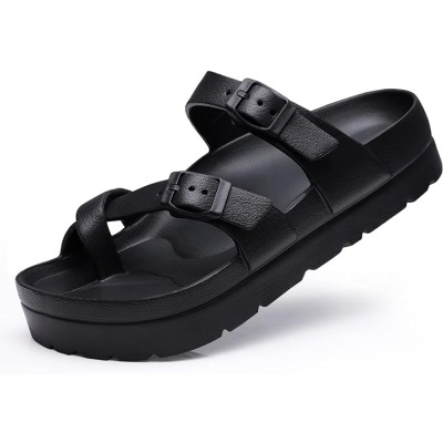 Women's Platform Sandals with Arch Support Comfortable Foam Slides Lightweight Thick Soles | Adjustable Buckle | Ultra Cushion