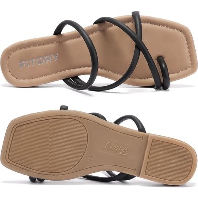 Women's Comfortable Dressy Flats Sandals Open Toe One Band Casual Walking Sandals for Summer
