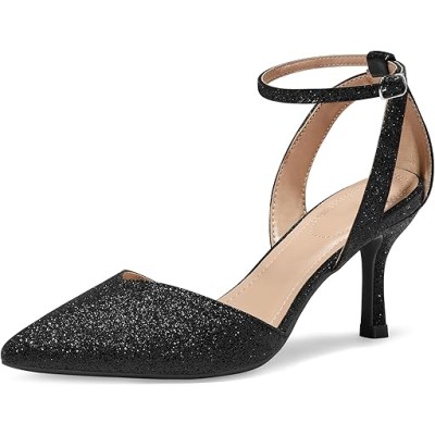 Women's Pumps Shoes Pointed Toe Kitten Low Heels Stiletto Ankle Strap Closed Toe Wedding Party Dress Sandals