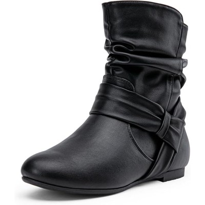 Women's Mid Calf Boots Fashion Slouch Flat Ankle Booties with Comfort