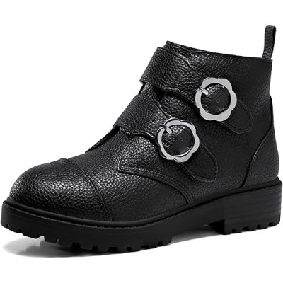 Girls Ankle Boots Kids Combat Boots Flower Buckle Straps Low Heel Fall Winter Booties Shoes