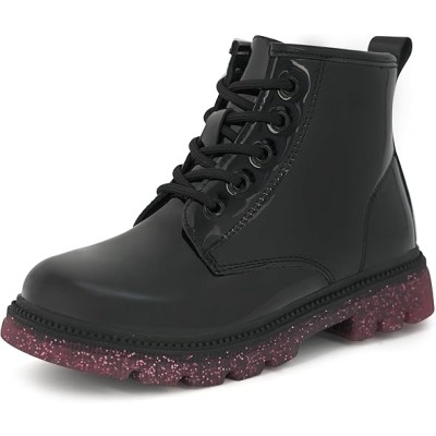 Girls Ankle Boots Kids Lace-up Glittery Combat Work Boot