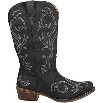 Womens Riley Round Toe Casual Boots Mid Calf Low Heel 1-2" - Black