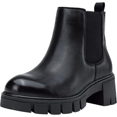 Pilot ~ Women Lug Sole Low Heel Chelsea Fashion Ankle Bootie w/Double Elastic Gore