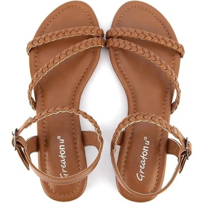 Women’s Flat Sandals Slip On Summer Gladiator Open Toe Braided Slingback Shoes